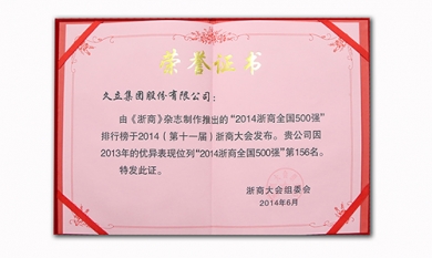 由《浙商》杂志推出的“2014浙商天下500强”排行榜于2014(第十一届)浙商大会宣布。。。。。